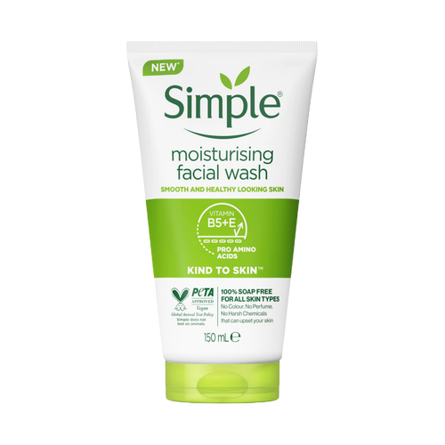 استفاده روزانه از فیس واش سیمپل مدل moisturising به مدت 1 هفته 40% رطوبت پوست را افزایش می‌دهد. PH فیس واش مرطوب کننده سیمپل خنثی و متعادل بوده و به طور کامل پوست را تمیز و مرطوب می‌کند. این محصول آخرین آثار آرایش، آلودگی و ناخالصی را از سطح پوست بدون احساس خشکی و سفتی پاک می‌کند.